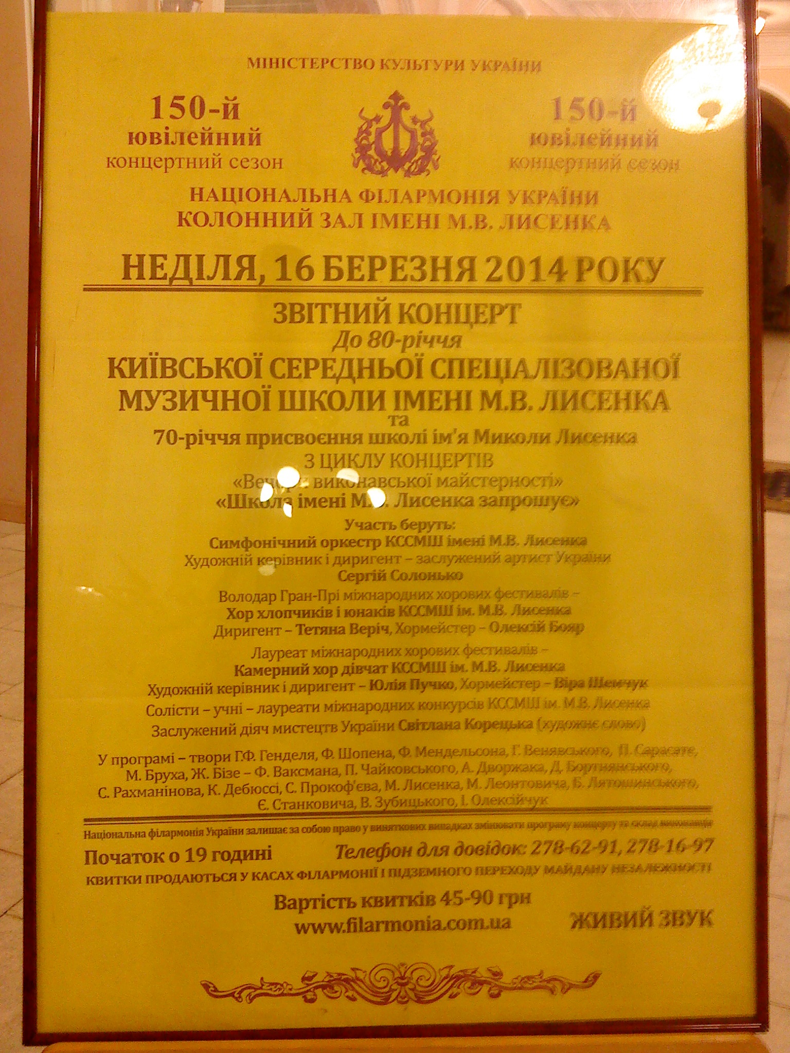 • Звітний гала-концерт Київської середньої спеціалізованої музичної школи імені М.В. Лисенка, 14 березня 2017