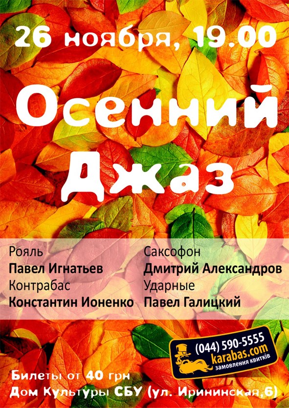 26 листопада 19:00 JAZZ QUARTET Project – Пі, м.Київ, центр культури СБУ-вул. Ірининська, 6 (метро «Золоті ворота»)