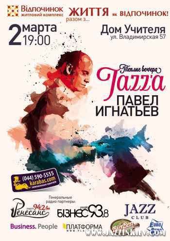 2 березня 2013 року о 19:00, у Будинку вчителя (м. Київ, вул. Володимирська, 57) відбувся концерт піаніста Павла Ігнатьєва у рамках проекту “Теплі вечори джазу”.